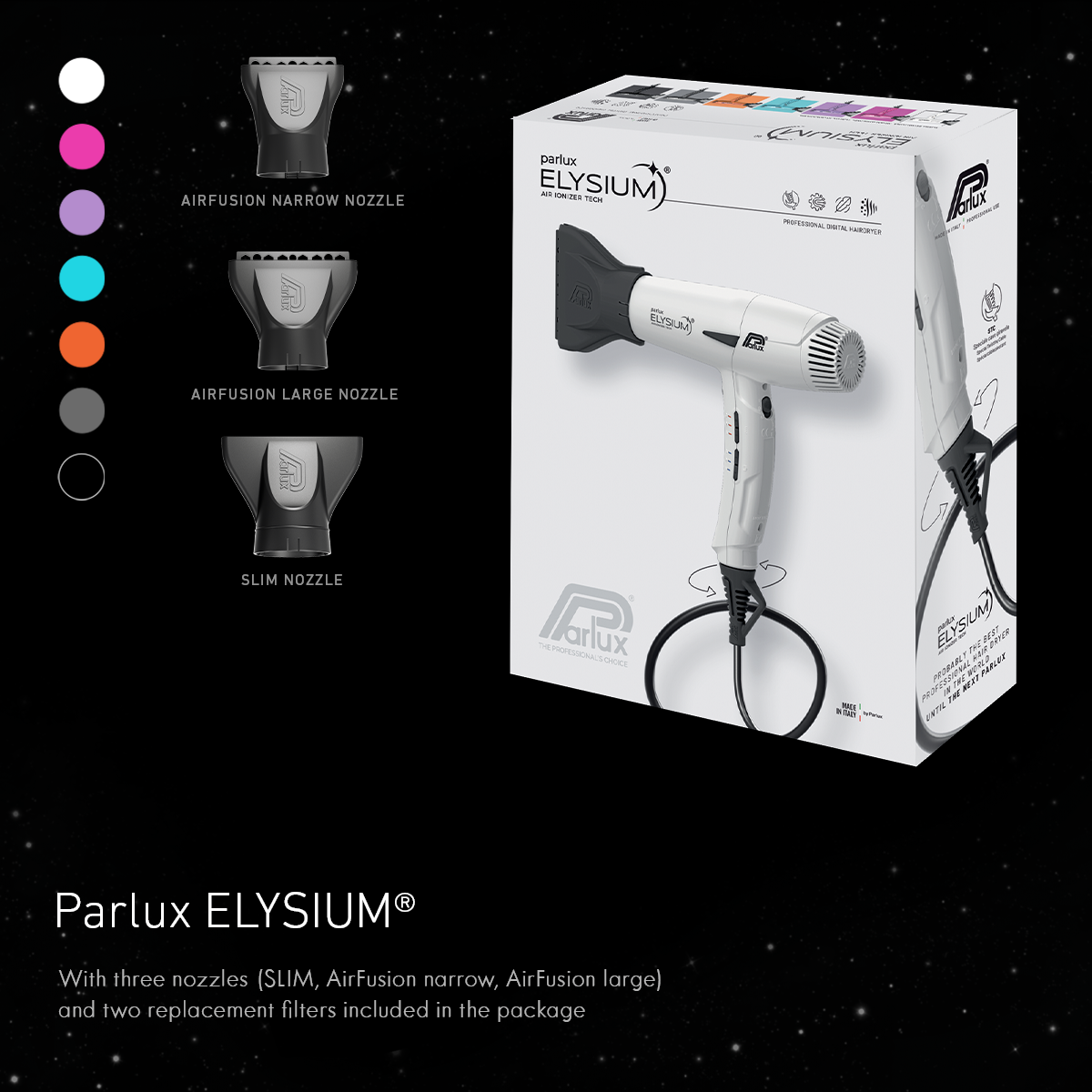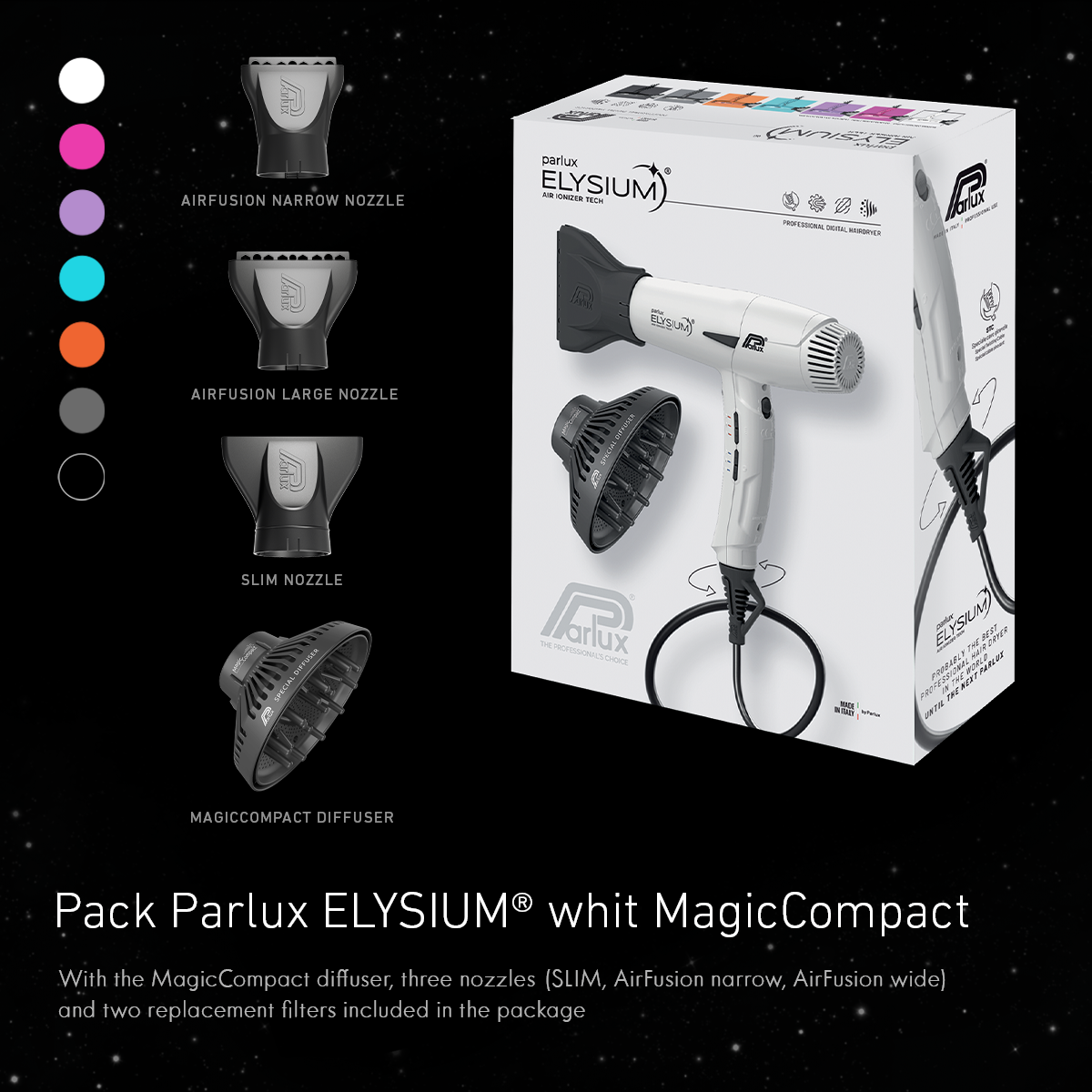 Parlux ELYSIUM® presents a new, one-of-a-kind, larger professional digital mini-motor that allows you to achieve a flow rate and air power released on par with the best traditional hairdryers.