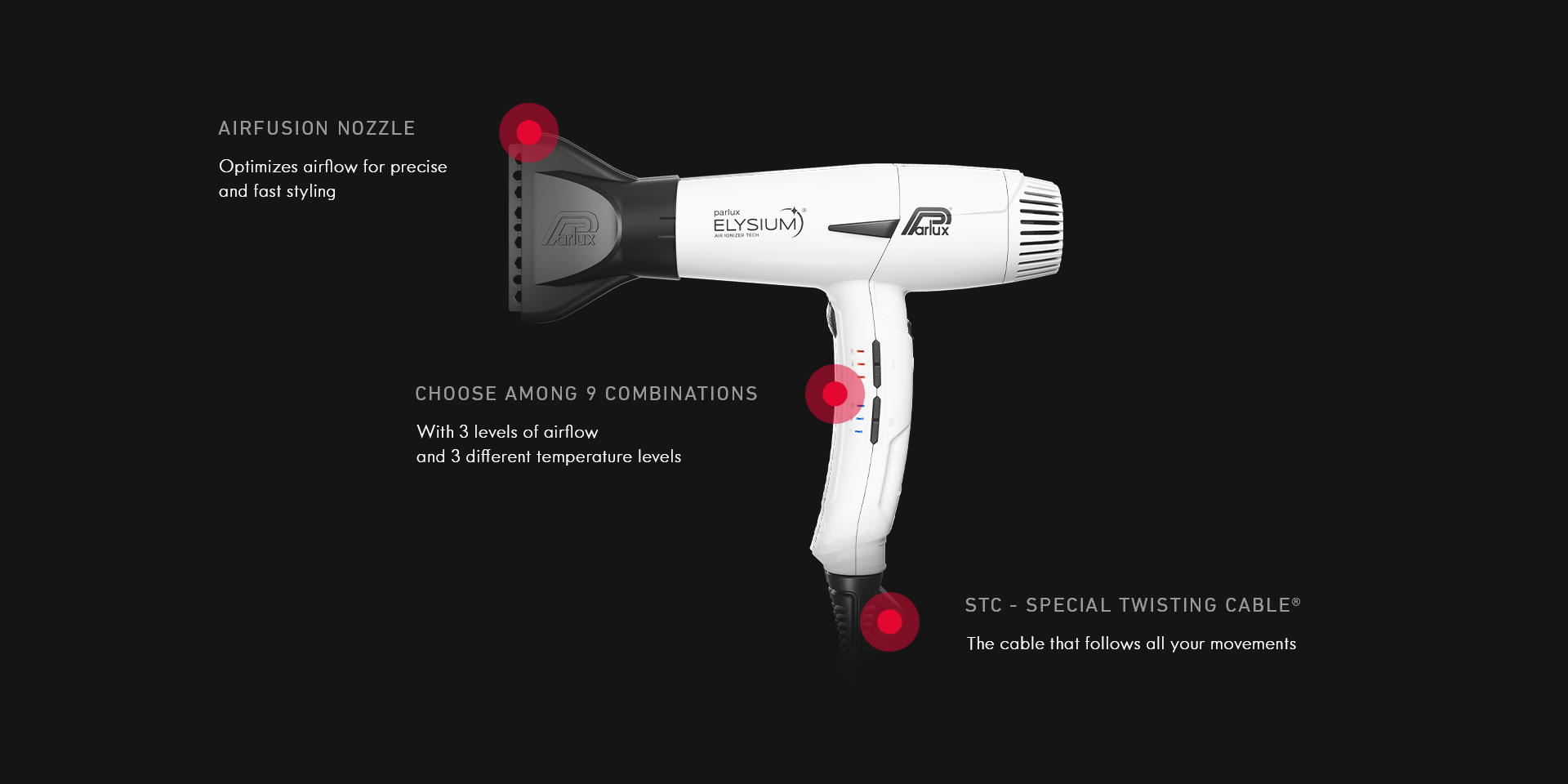 The high-performance resistance of Parlux ELYSIUM®, developed specifically for this engine, allows for the production of high and uniform heat for as long as necessary.