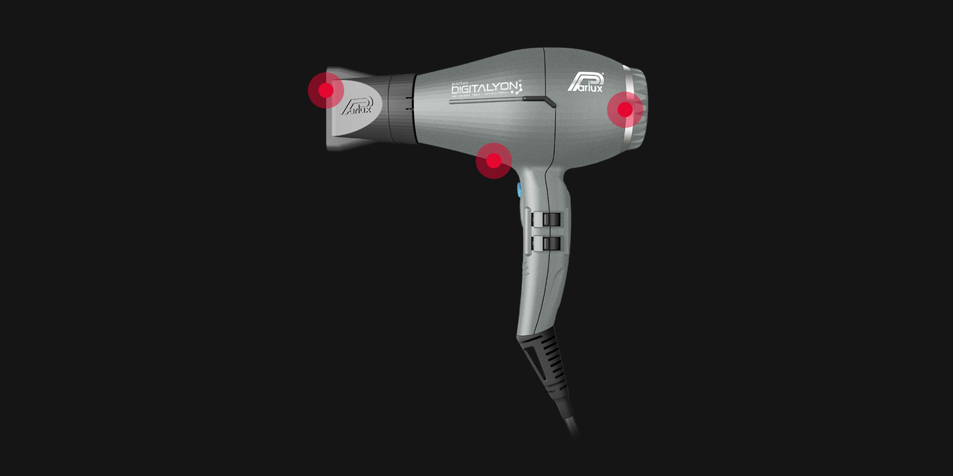 In addition, Parlux DIGITALYON®'s new technologies have enabled it to further lighten its weight and find a perfect balance, ensuring hours of use of the appliance without fatigue and pain.