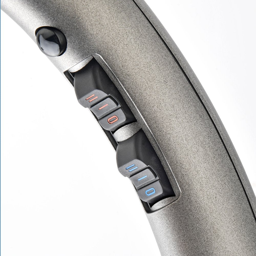 È un phon professionale dal design "vintage" con finitura in "graphite spazzolata" che racchiude al suo interno una tecnologia di alto livello che soddisfa i professionisti più esigenti.