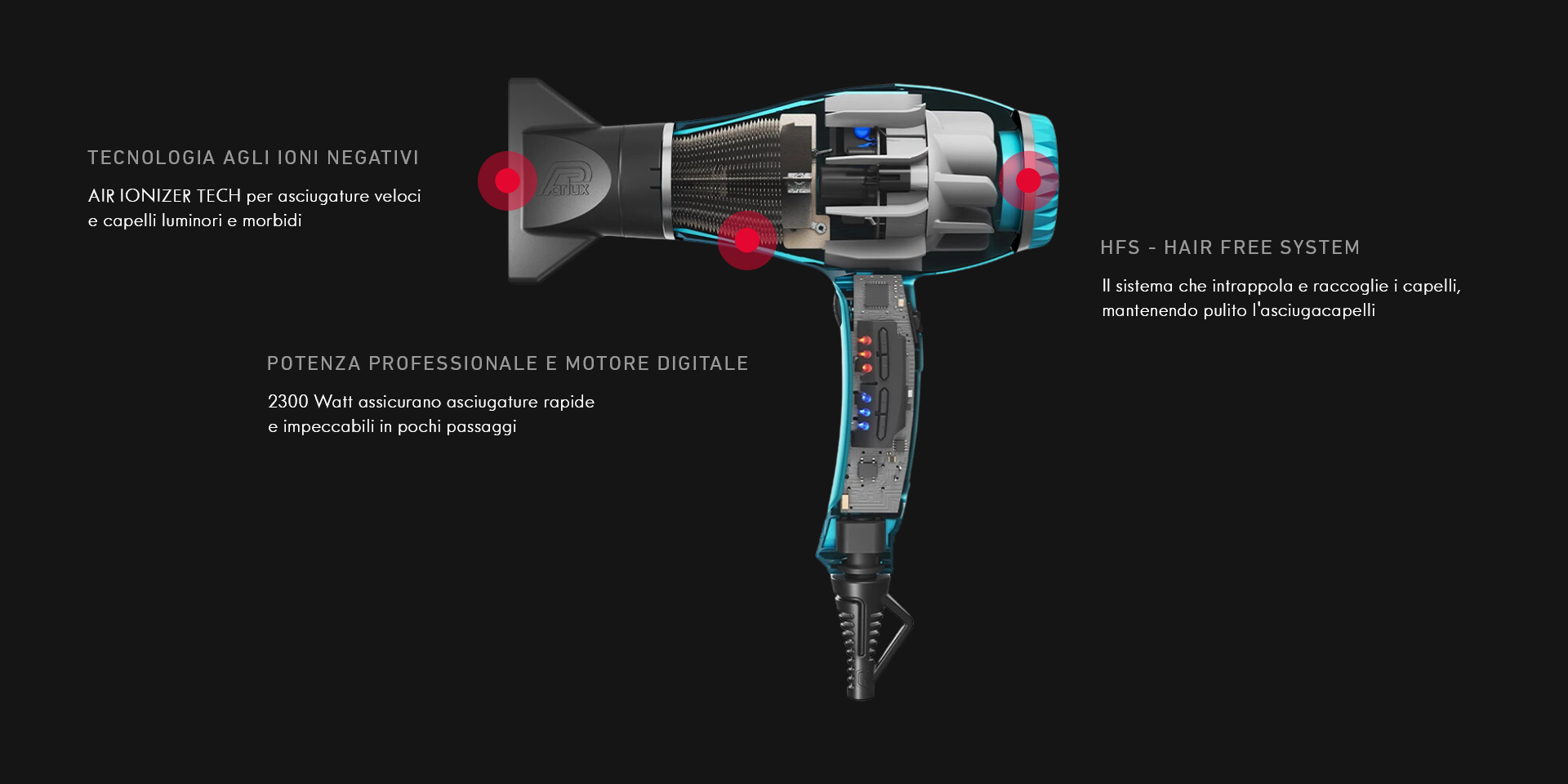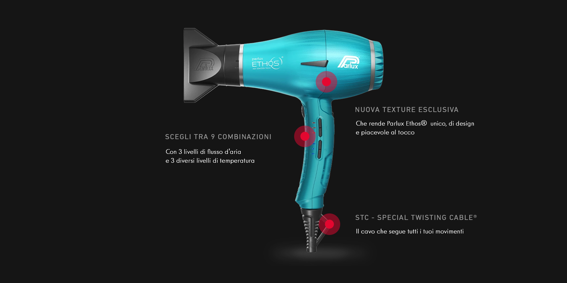 Il connubio perfetto tra design "classico" e innovazione tecnologica digitale di Parlux ETHOS®, offre prestazioni e affidabilità eccezionali che migliorano il lavoro quotidiano dei professionisti e la loro esperienza di utilizzo. Il motore professionale digitale e l’alta qualità di costruzione garantiscono leggerezza, potenza e robustezza, mantenendo l’eredità e i valori che da oltre 40 anni contraddistinguono il marchio Parlux.