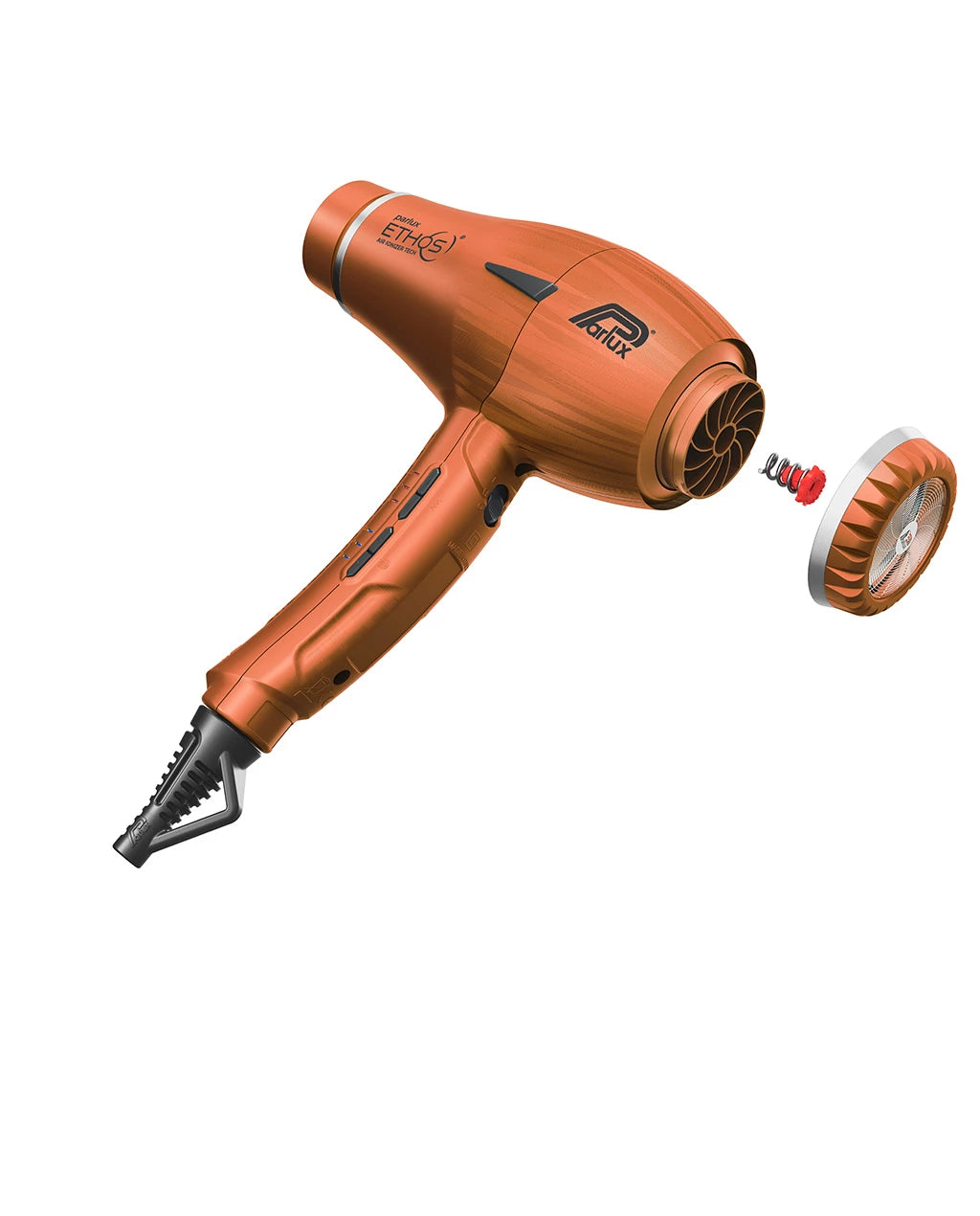 Grazie al suo diametro ridotto e all'impugnatura dal design classico e piacevole, Parlux ETHOS® offre un’ergonomia e un bilanciamento impeccabili, restituendo l’usabilità eccezionale dei tradizionali asciugacapelli professionali Parlux.